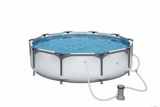 This package comes with a 110 120v cartridge filter pump with a pump flow rate of 1 500 gallons per hour.