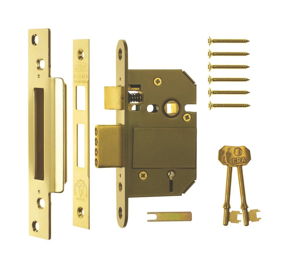 Era fortress bs 3621 2 5 inch 64mm 5 lever maximum security mortice sashlock brass effect.